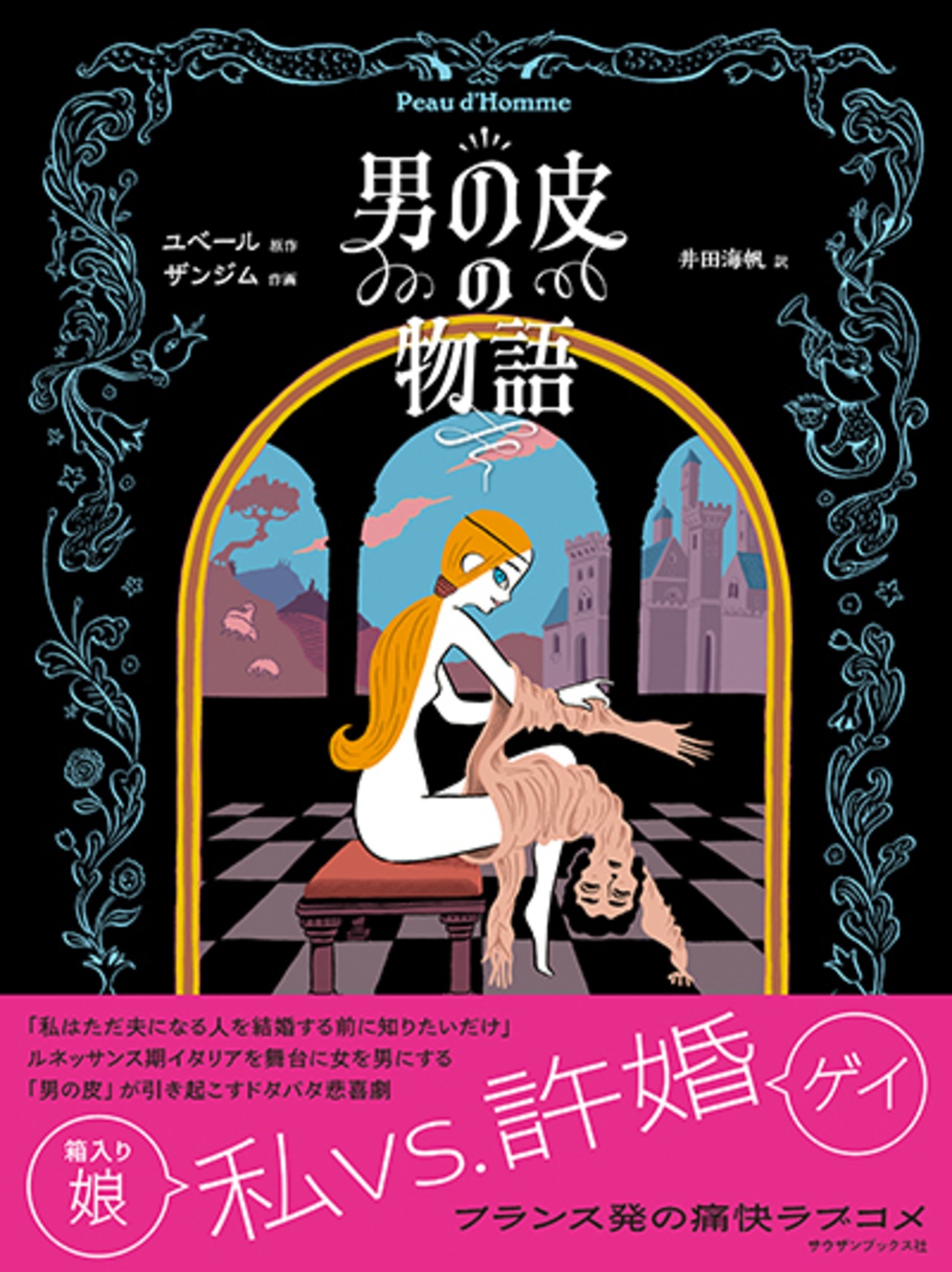 それこそ、先祖伝来の家宝、女を男にしてしまうという世にも珍しい「男の皮」だった。実際に身につけてみると、あら不思議、ビアンカはたちまち浅黒い肌の美男子に。