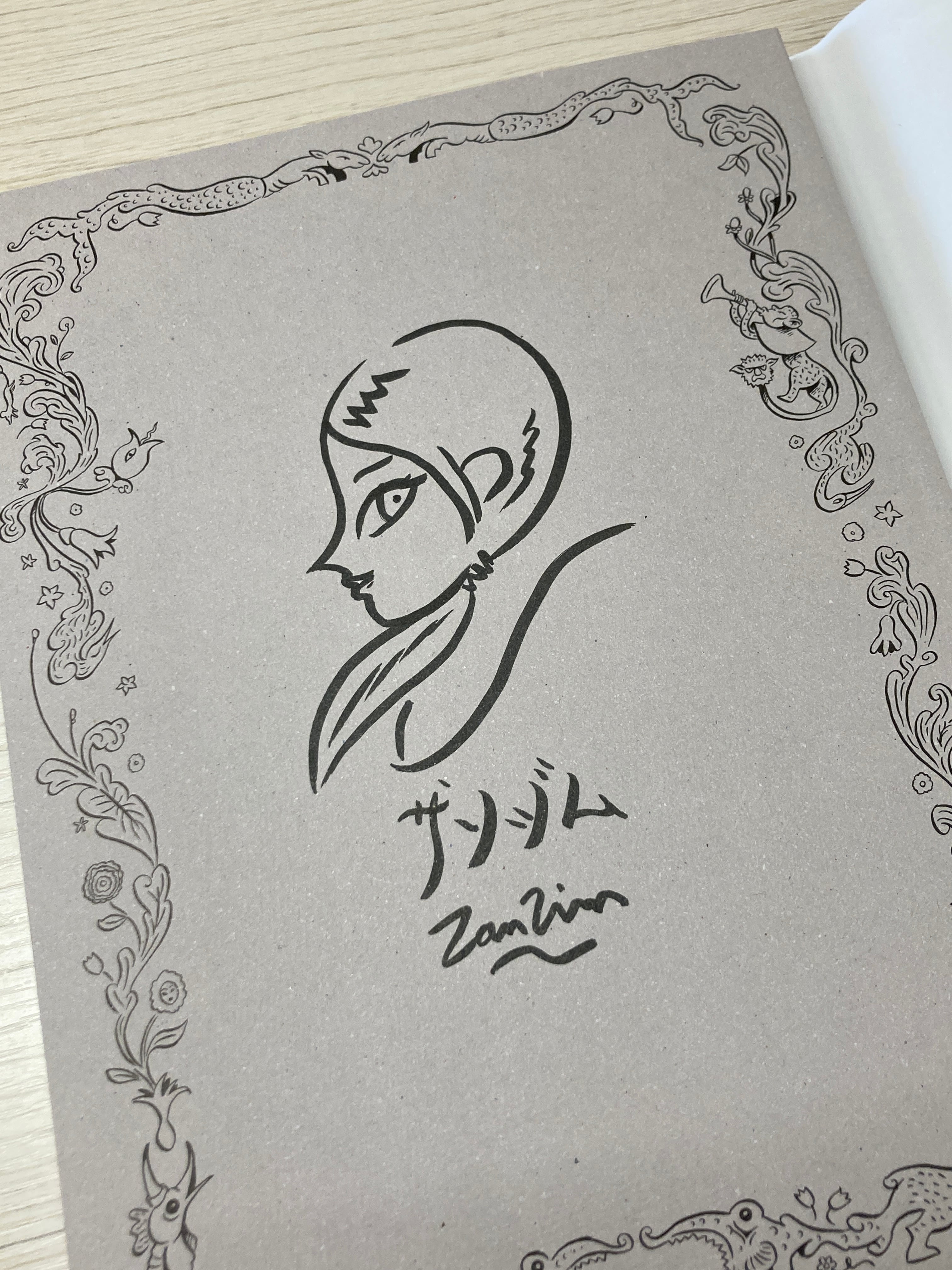 作画担当ザンジムによる直筆サイン入り。絵柄は選べません。サインは表4(カバーをめくった裏表紙)に入っています。